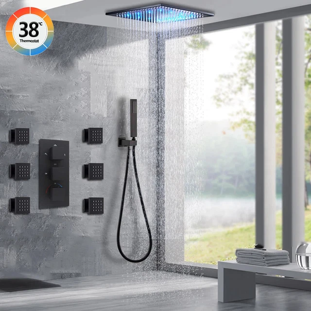 Buy Matte Black Shower System Ceiling Mount ABS 12 Inch Rain Shower Shower Head Rainfall Combo    save money on your next water bill and still shower in luxury with one of these rain shower heads. What to look for in a rain shower head.   10 inch rainfall shower head with handheld spray combo, dual shower. Shower head, 12‘’ high pressure rainfall/handheld shower.  12'' rain shower head combo, high pressure rainfall shower head with. Shower Head Rainfall Combo.